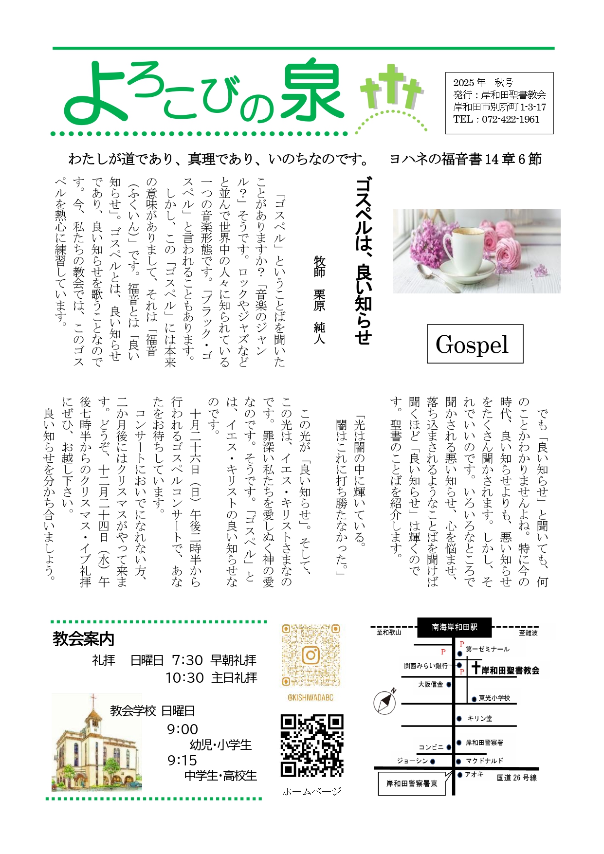 ★ よろこびの泉 2025. 秋号 栗原純人牧師 =>読んでみる
