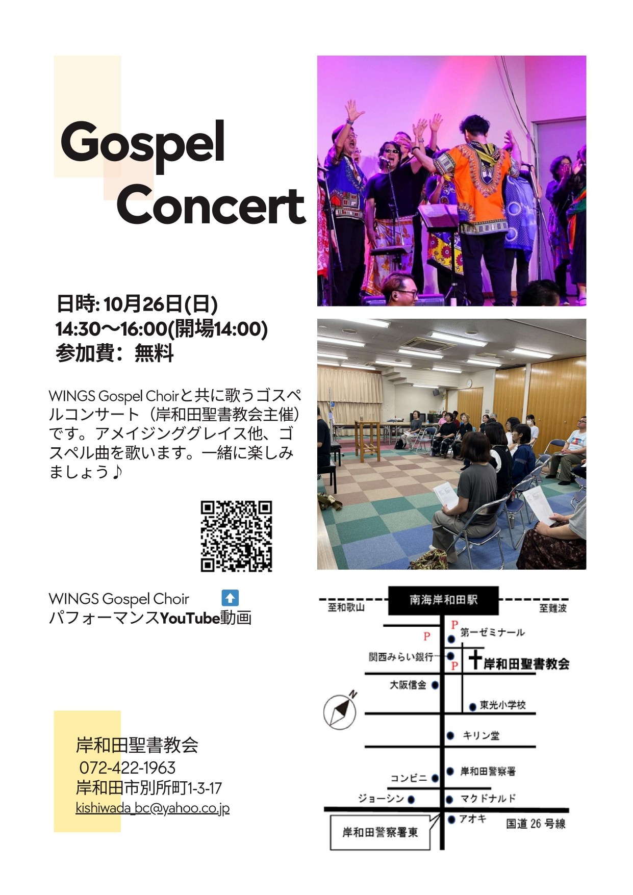 10月26日(日)の午後に行われるゴスペルコンサート(ゲスト:ウィングス・ゴスペルクワイヤー)に是非ご参加ください。 読んでみる ♪5 月から月一回、第三主日※の午後6:00~8:00まで教会でゴスペル教室を行います。